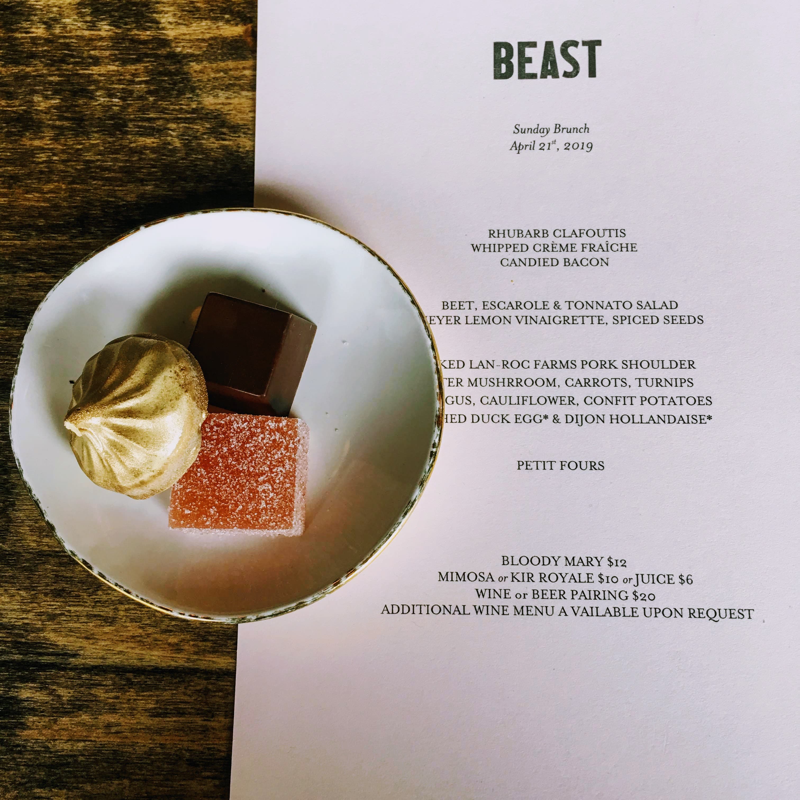 Beast is definitely a $$$$ restaurant, and brunch will run you $40 for 3 courses. Each course is delicately done, starting with a sweet and tangy rhubarb clafoutis and ending with a rich and savory pork shoulder eggs Benedict. Diners sit at communal tables, so as a solo traveler, I enjoyed the chance to meet other diners.