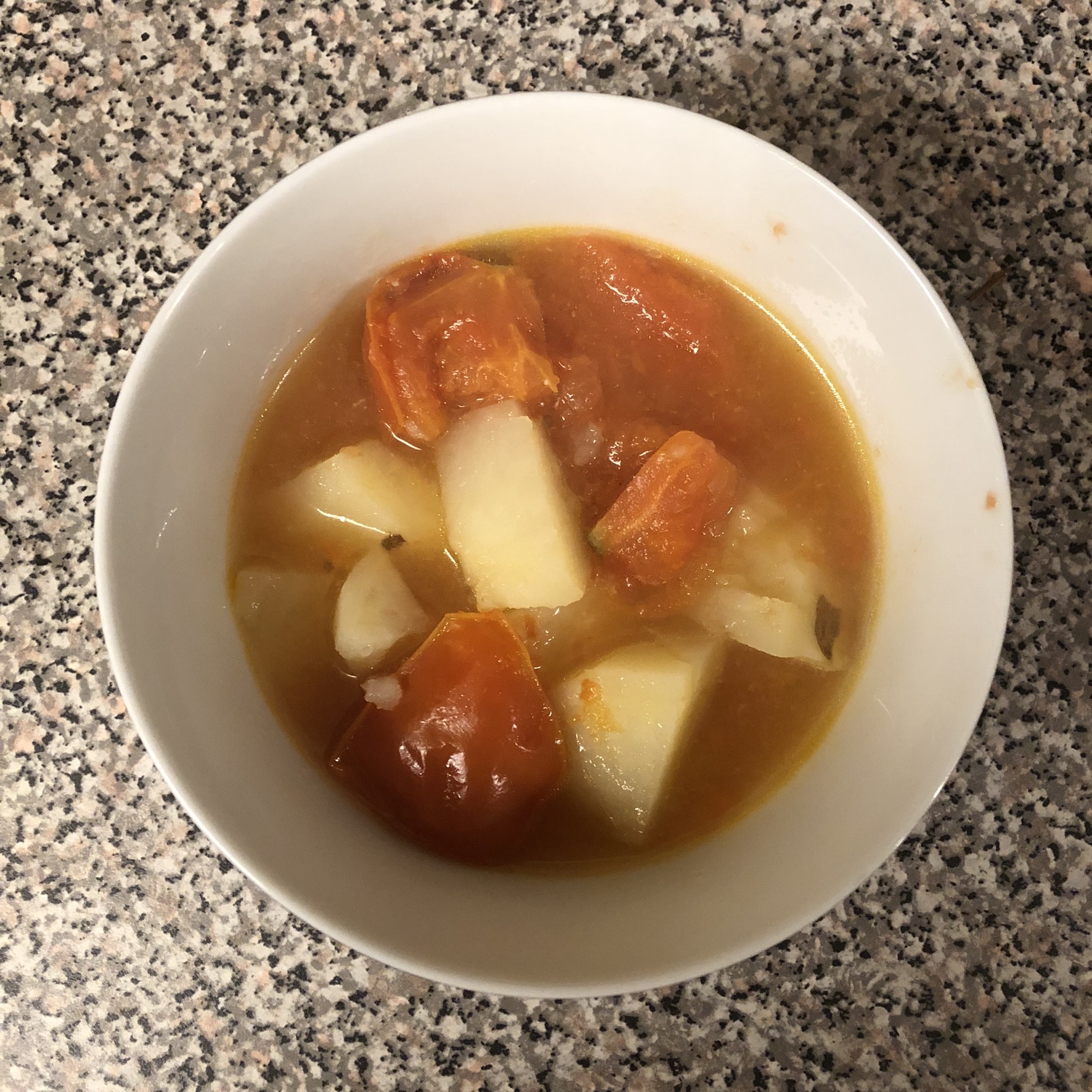But I’m determined to get my dad’s recipes down in a way that can be replicated and passed along. He also serves the ribs with a heartening potato and tomato soup that uses the leftover pork broth. So in the name of science, I did an experiment and came up with the following results – please take with a grain of salt as the recipe and process still need refining: